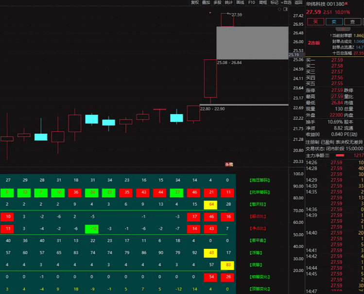 同时,若昨日的浮筹与当前浮筹的差值不小于30,且底筹与昨日底筹的差值也不小于30,背景色同样将变为黄色。