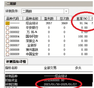经过长达两年的实战测试,“二踢脚”选股绝技的胜率高达91%,信号充足且稳定。