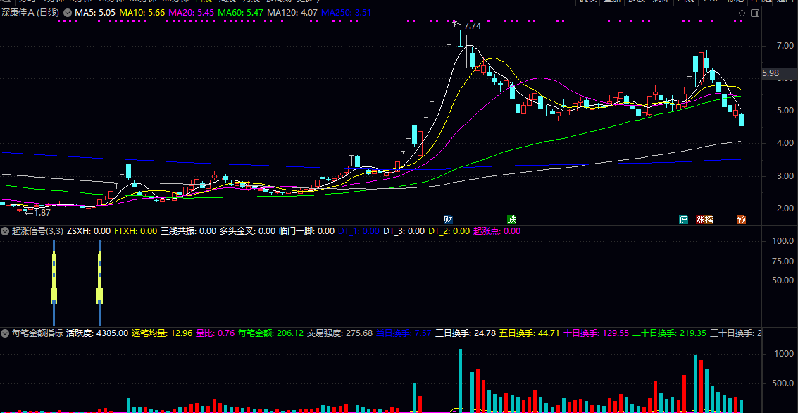 同样是在1月28日,冀东装备在副图上出现了火箭信号,这是主力杀跌挖坑回调后的重要拐点。均线交叉形成的多头趋势为我们指明了方向,此时正是最佳买点。虽然随后的连续涨停板难以跟进,但四板后的回踩仍然提供了上车的机会。然而,对于非龙头短线选手来说,这一机会已过了最舒适的买入区间。这再次证明了择时择机的重要性。