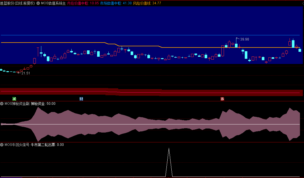 除了尚局顾比均线外,【尚局MOS操盘系统】还配备了神秘的副图指标——资金流动线。