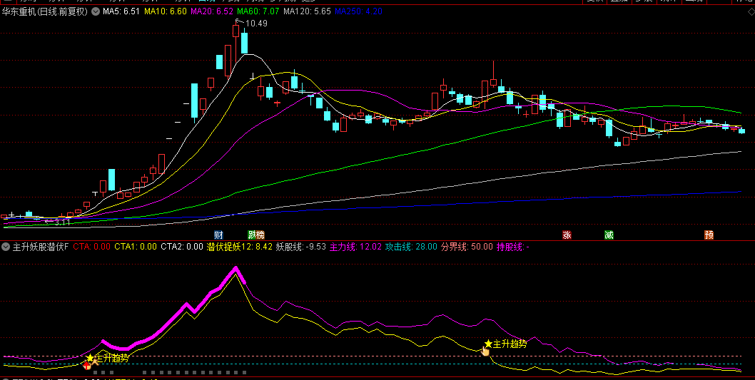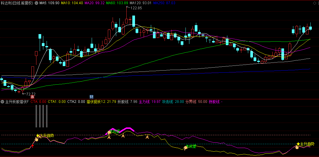2、采用9日指数移动平均计算得出,作为捕捉潜在妖股的基础指标。