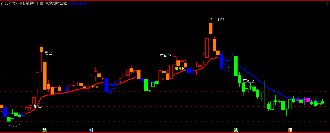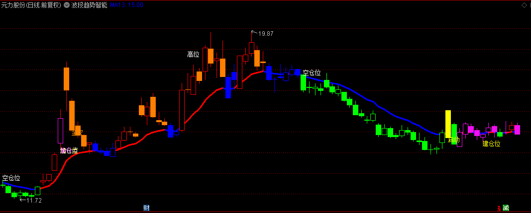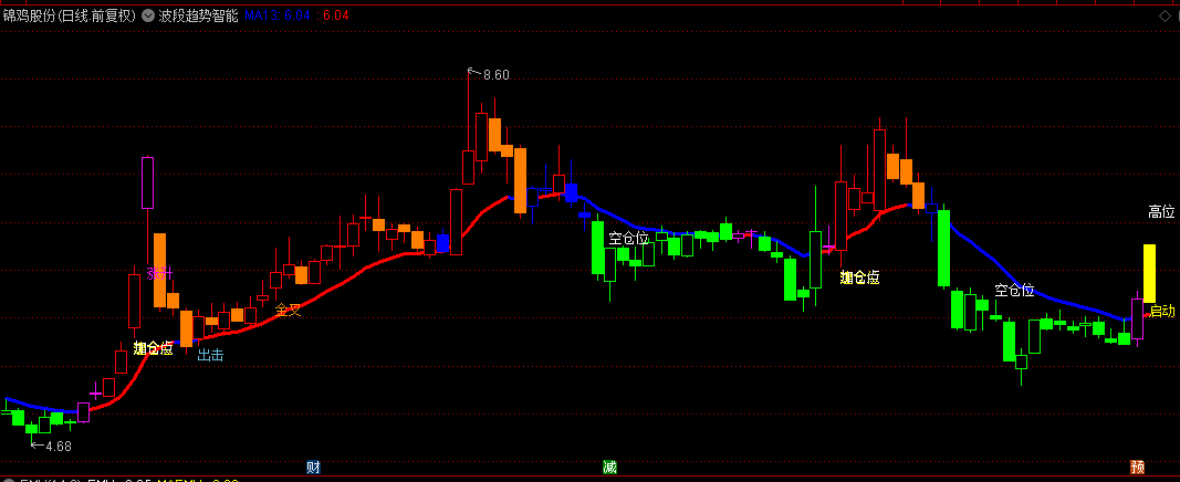 比如,当短期均线从下往上穿过长期均线时,可能会标记为“建仓位”;