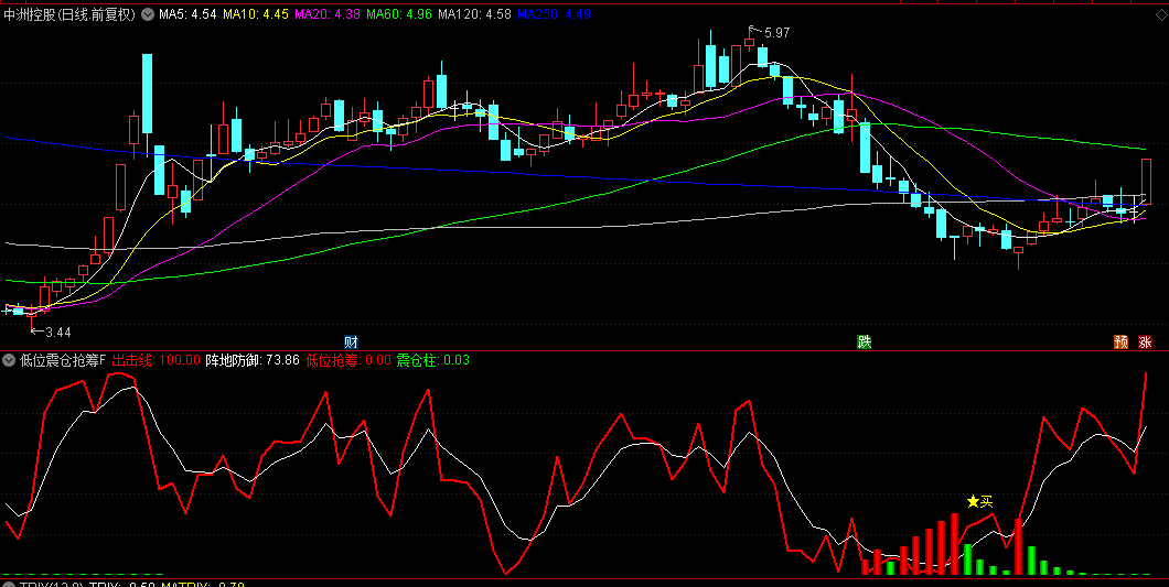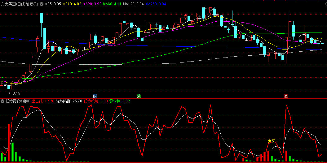 指标中特别设计了“价位线”及其与特定阈值的交叉信号,以黄色星号“★买”标记,为投资者提供了明确的买入信号。