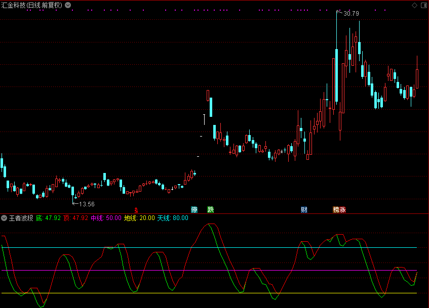 底: (EMA(VAR5,5)+100)/2-3,COLORGREEN ;