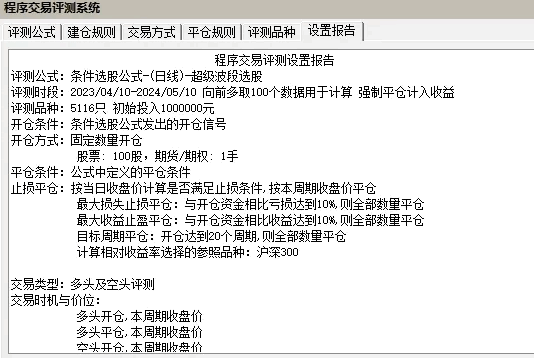 数据显示2022-04-10至2024-05-10 止盈10% 止损10% 周期20 去除了ST 只选主板 去除创业板、科创板数据的评测数据