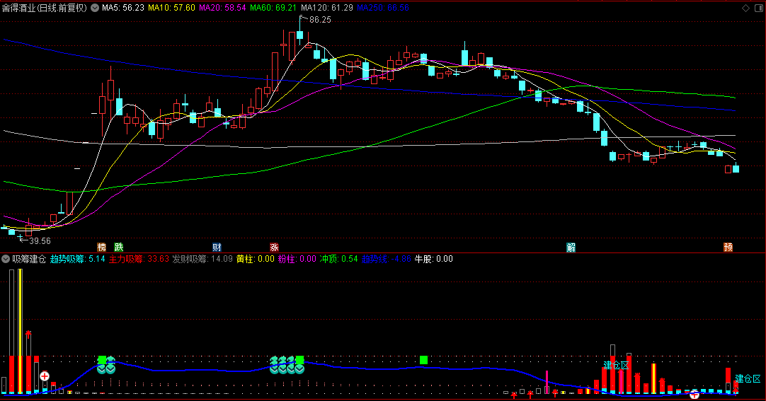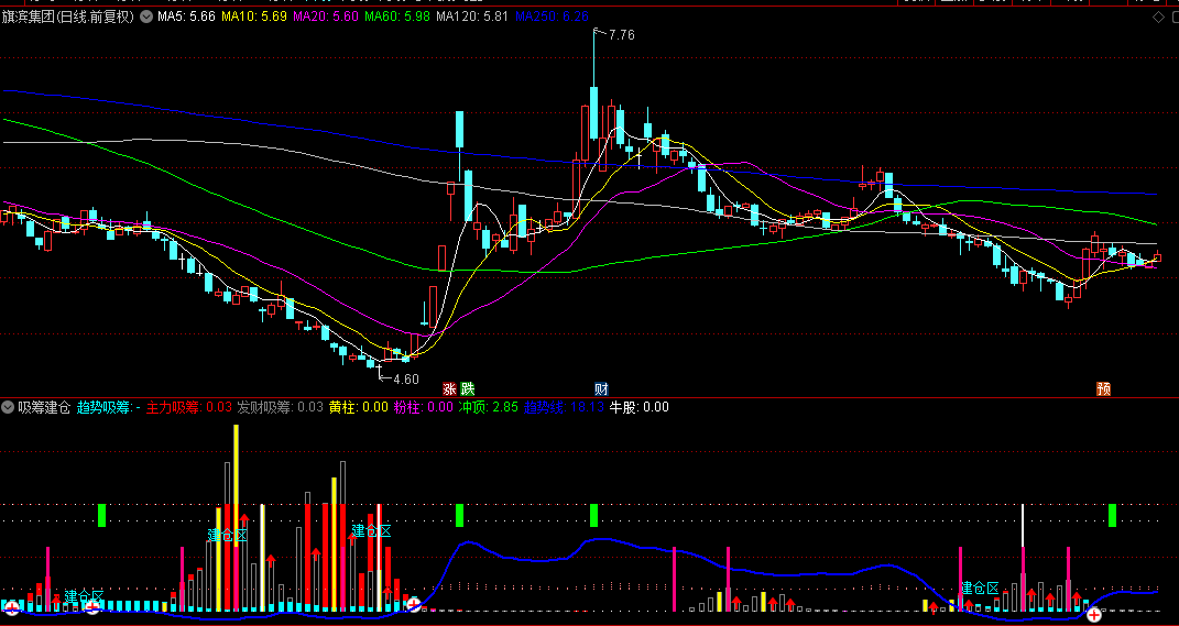 “吸筹建仓”副图指标,包含选股指标,指标没有未来函数