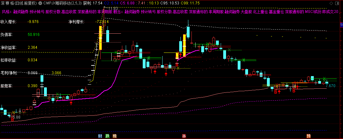 通达信【CMPJX筹码移动平均】主图指标,连阴首阳看压力+连阳首阴看支撑,易于掌握的短线战法分享!