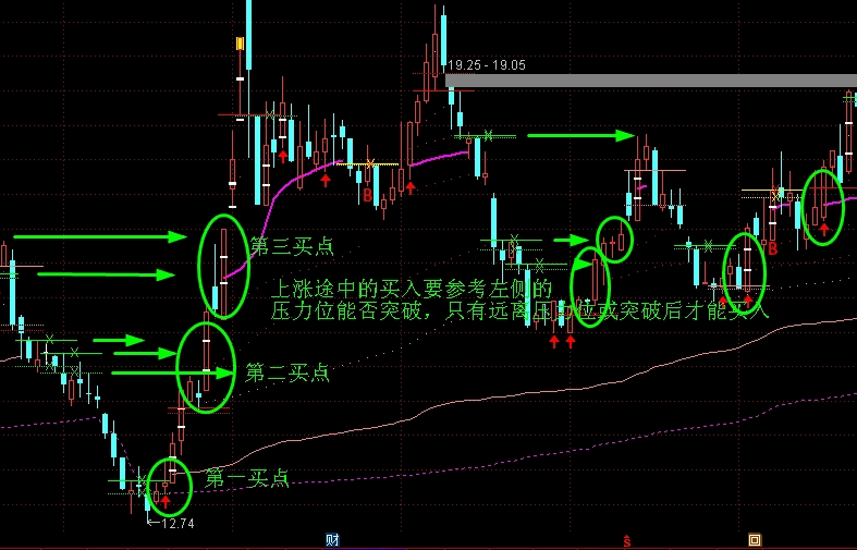 上涨途中的买入点,一般要参考左侧的压力位,回调支撑位低吸买入或突破买入都可以,关键是设置好止损位。