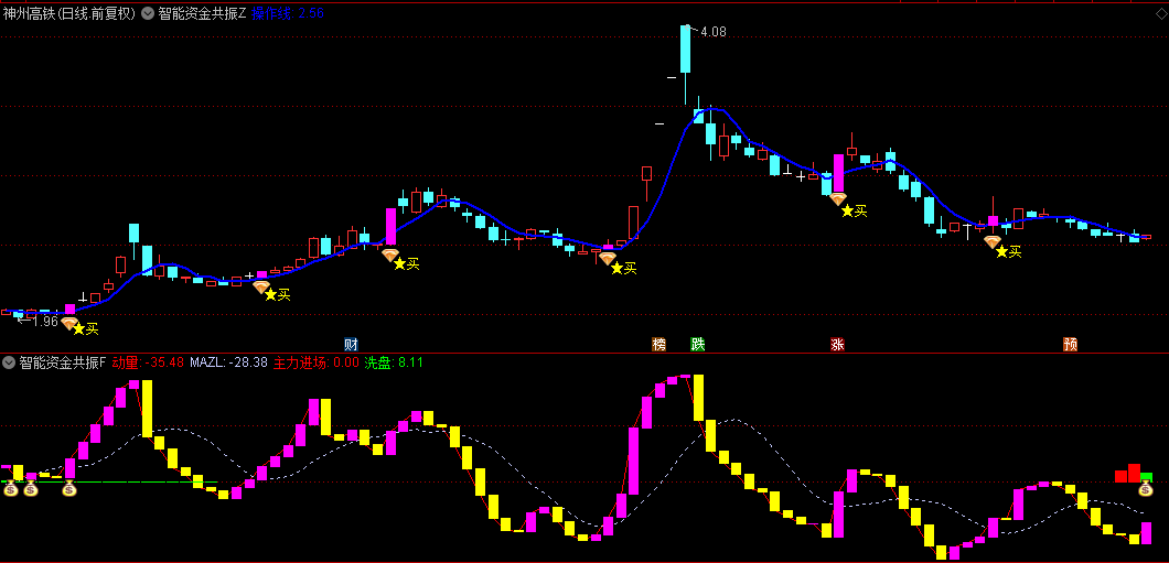 通达信【智能资金共振】主图/副图/选股指标,捕捉主力动态行为,多头力量集结发信号!