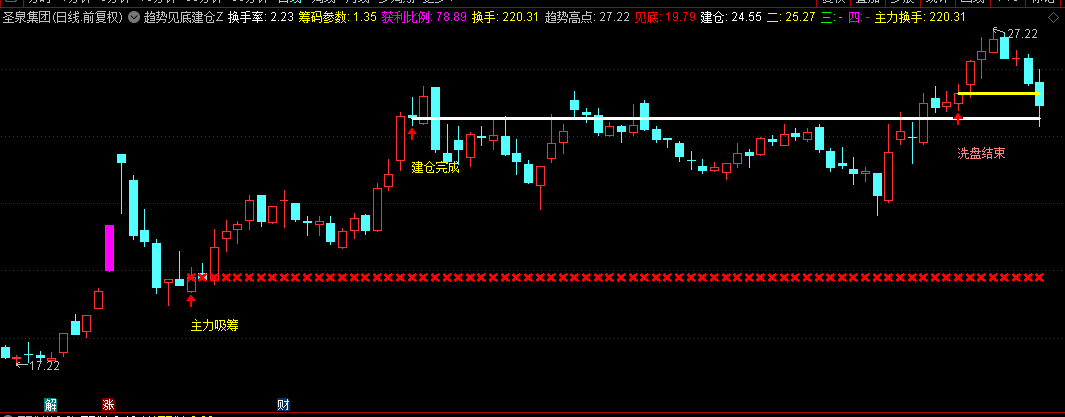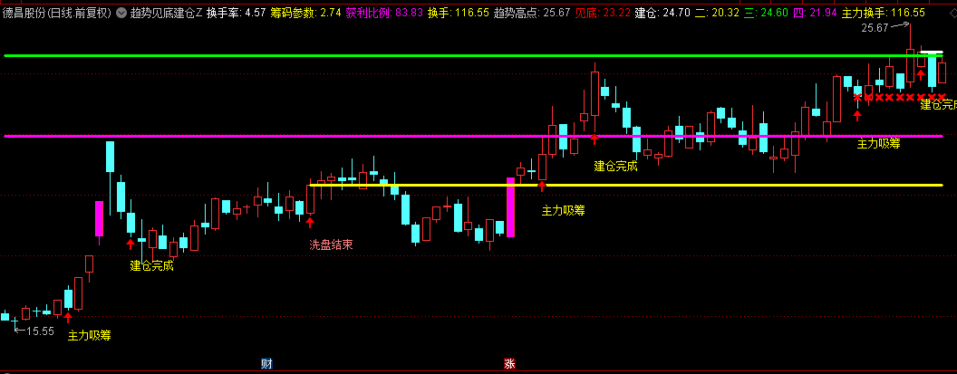 当换手率突破100%时,标注“建仓完成”,表明主力资金已完成初步建仓;