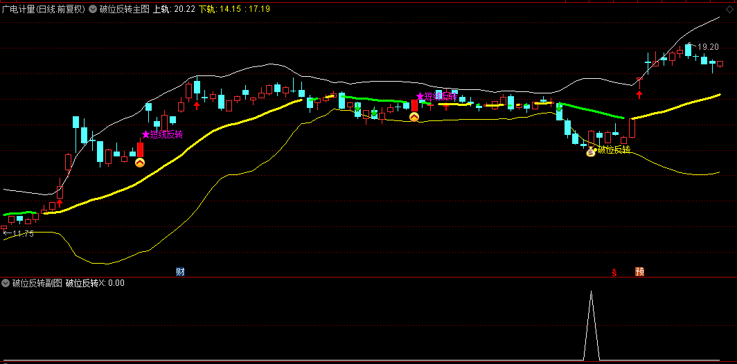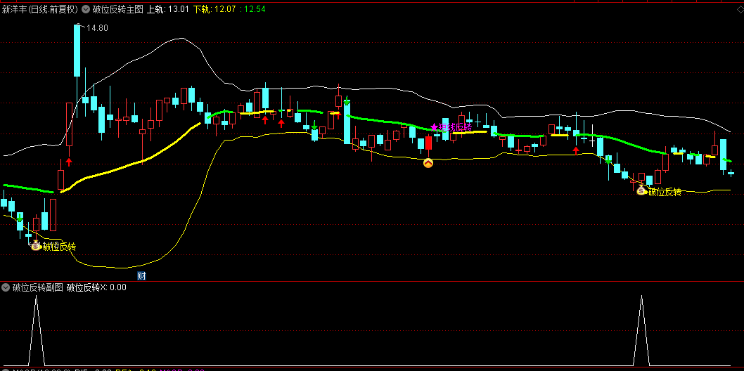 破位反转信号,作为该指标的核心,其位置相对较低,这意味着在股价经历了一段时间的下跌后,该信号的出现往往预示着反转的即将到来。