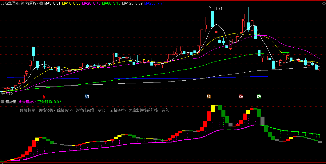 这是我收集的指标,经过小许改动优化。用于把握中线买卖点和判断多空趋势,简单明了,不需要费脑子。