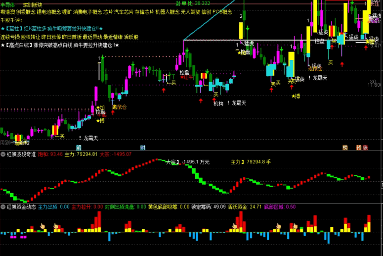【红帆红牛】主图+【红帆波段奇准】副图+【红帆资金动态】副图+【红帆合力分时】分时主图指标源码分享!