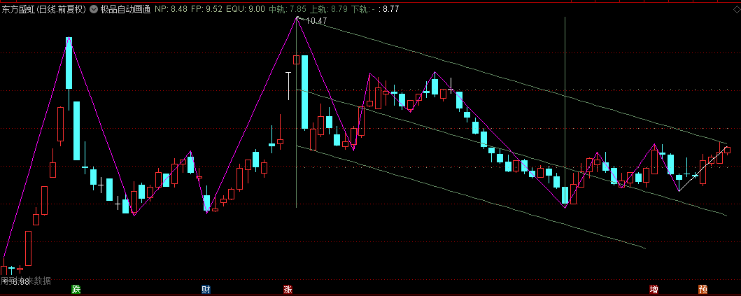 通达信【极品自动画通道波浪】主图指标,高低点自动捕捉,动态绘制趋势通道与波浪轨迹!