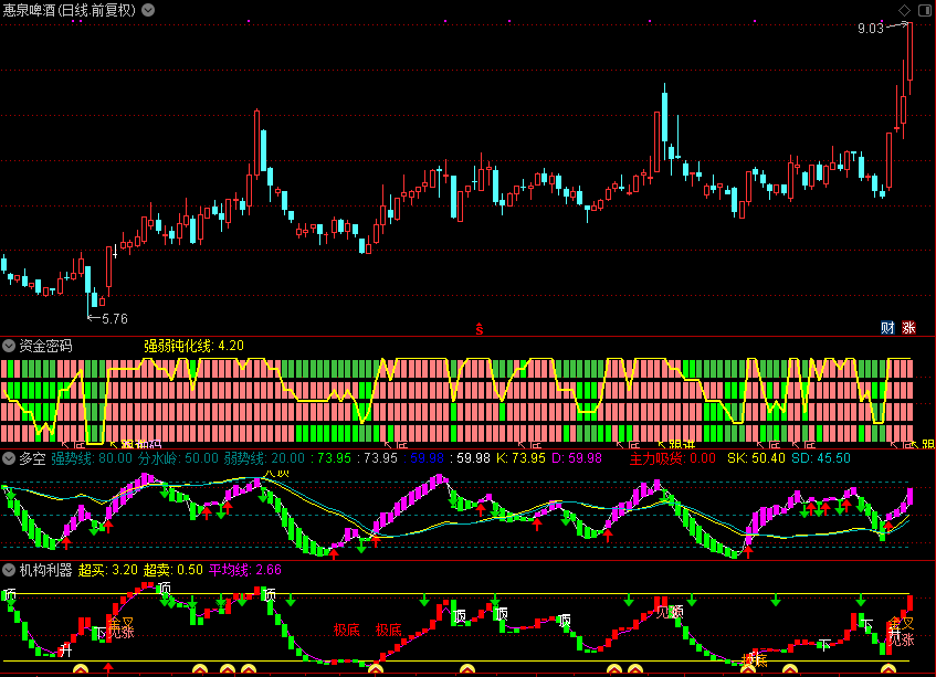 指标结合了趋势和量能,还有短线的买卖入场,包括建仓时机