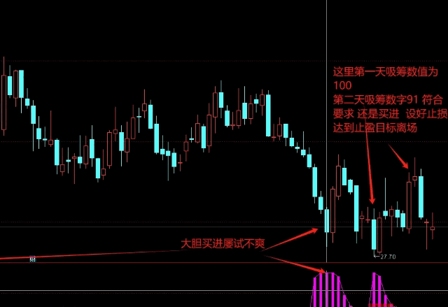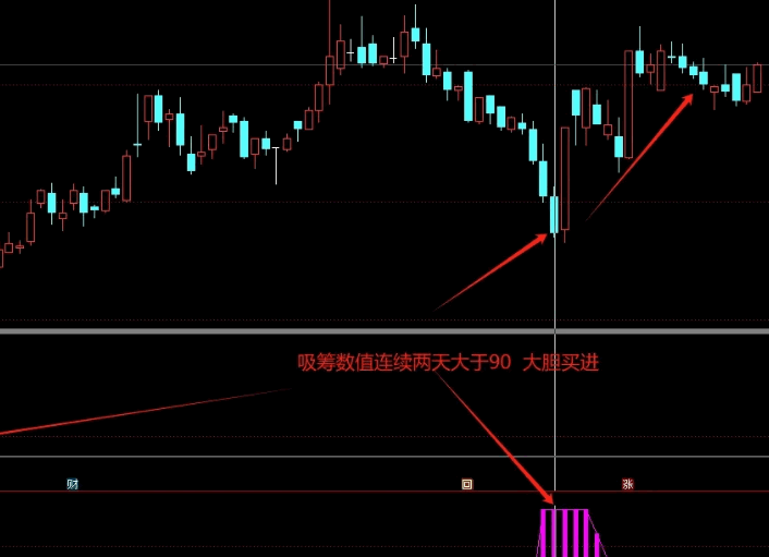 4.后续几天吸筹指标低于90后 再次大于90买进10%