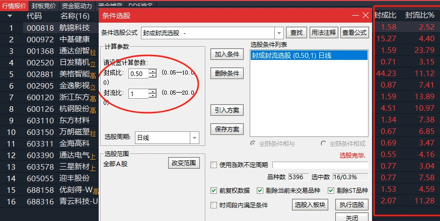 封流比封成比选股可以自己调整参数