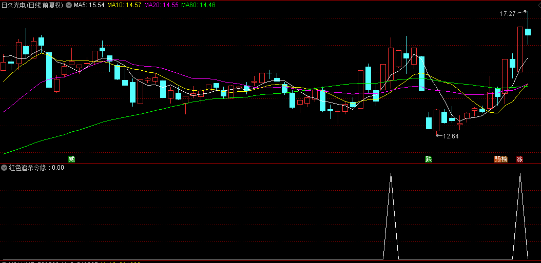 改自三线大神的【红色追杀令改X】副图/选股指标,赋予了量化因子,出的票变少,平均每天1-2只!