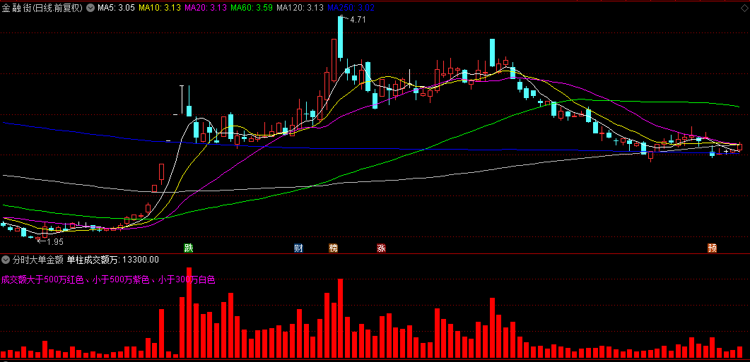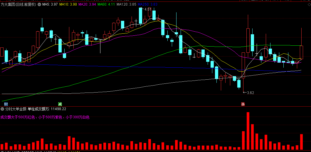 情绪监控之通达信【分时大单金额】副图指标,成交额分为三档,判断四种情绪!