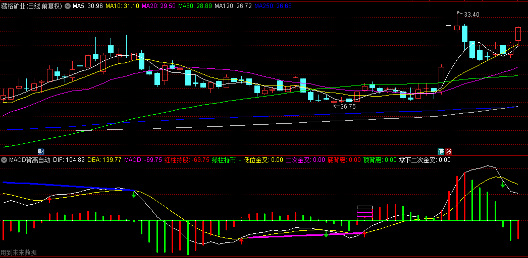 背离自动画线是一种基于MACD和量能原理量化的技术指标,它能够帮助投资者快速识别市场趋势和交易信号。