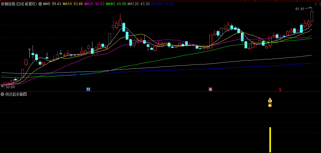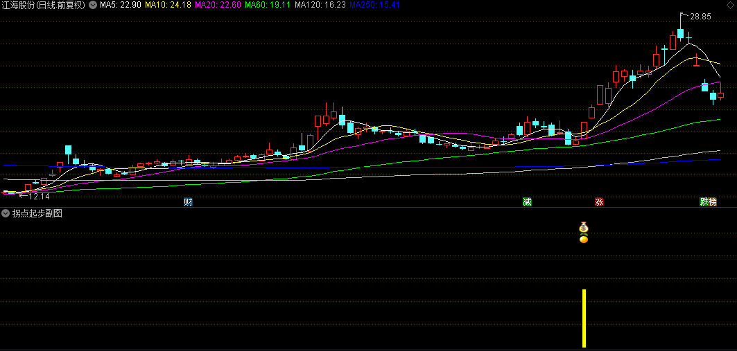 精选【拐点起步】副图+选股指标,通过指数移动平均线变化,识别潜在的趋势转折点!