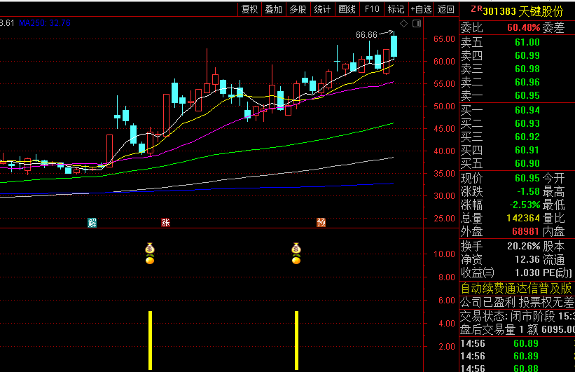 此时,指标会在图表上以洋红色和黄色柱线突出显示,并配以特定图标,直观提示投资者关注。