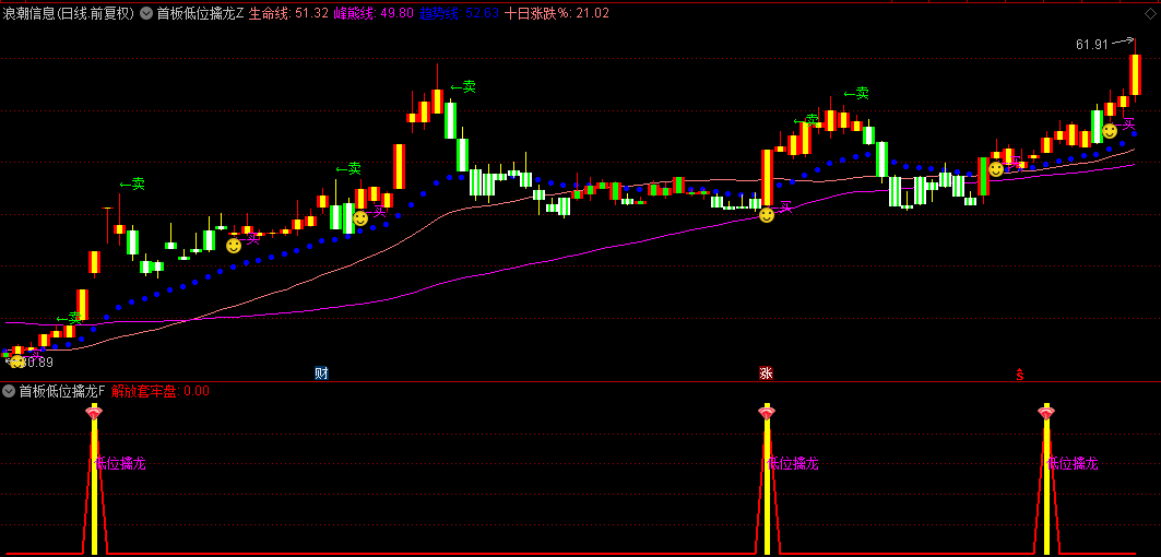 解放套牢盘:当满足特定条件时,以醒目线条和文字提示“低位擒龙”机会,帮助投资者捕捉潜在的上涨行情。