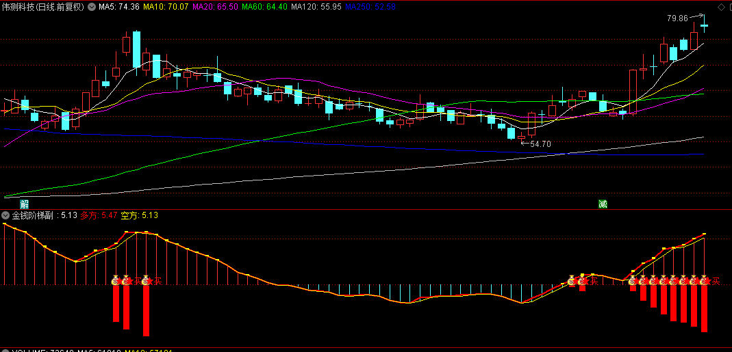 【金钱阶梯】指标的核心在于其对股价动态的深刻洞察。