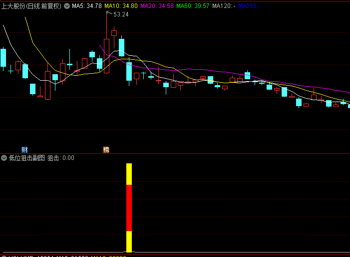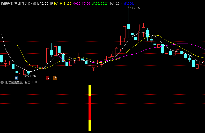 在通达信的图表中,【低位狙击】副图会以特定的颜色和图形来显示低位买入信号。