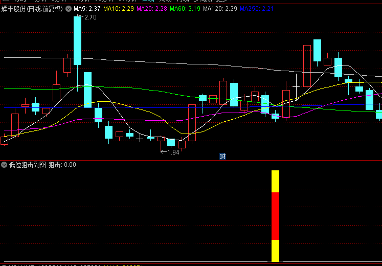 当指标判断股票处于低位时,会在图表上显示出红色的低位狙击信号,同时配以不同颜色的柱状图来提示投资者关注。
