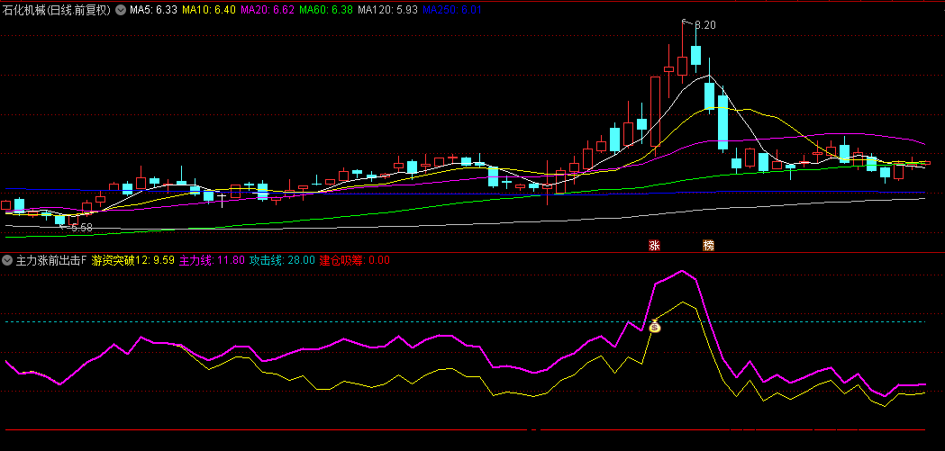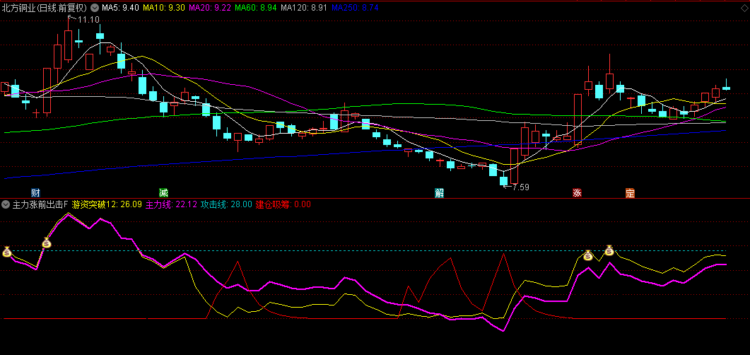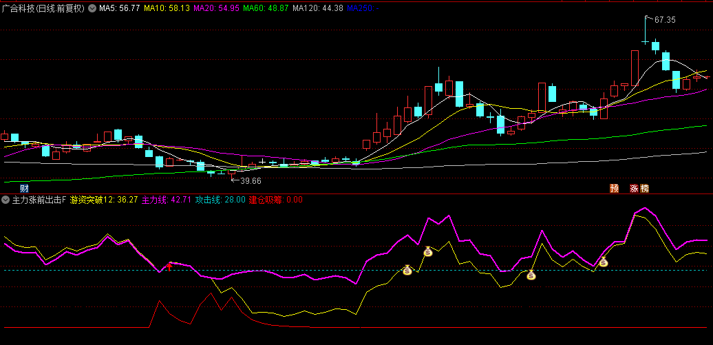 当紫色的攻击线穿越那条墨绿色横线时,一个强烈的信号便应运而生——即将进入强力拉升期。