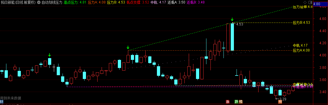 通达信【自动划线压力支撑位】主图指标,一眼自动化分析出当前趋势,算出压力支撑,把握行情!