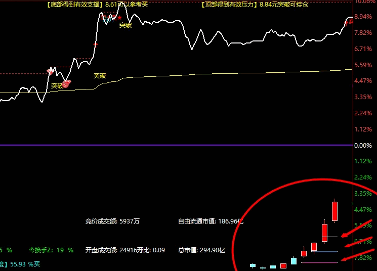 【分时9KV2】分时主图指标,分时多功能主图,叠加9日K-VOL!