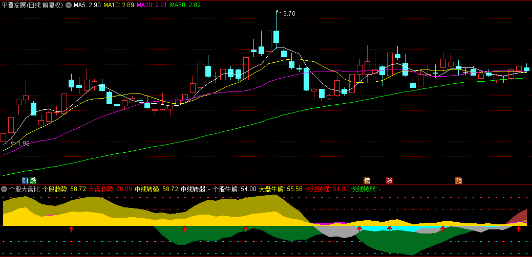 这指标在下降趋势时类似MACD但比MACD周期更大,信号更少,可以更好把握长线趋势,又比龙系趋势指标LON敏感一点。