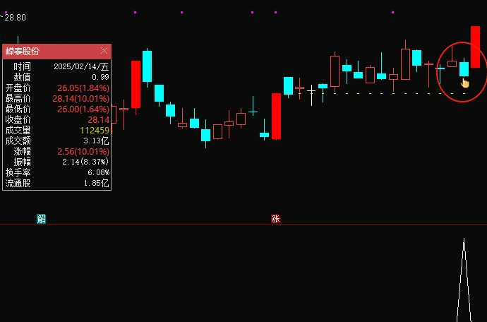 虽然嵘泰股份今天没有板,但是按照指标给出的买点位置,今天这个涨停空间是可以吃到的: