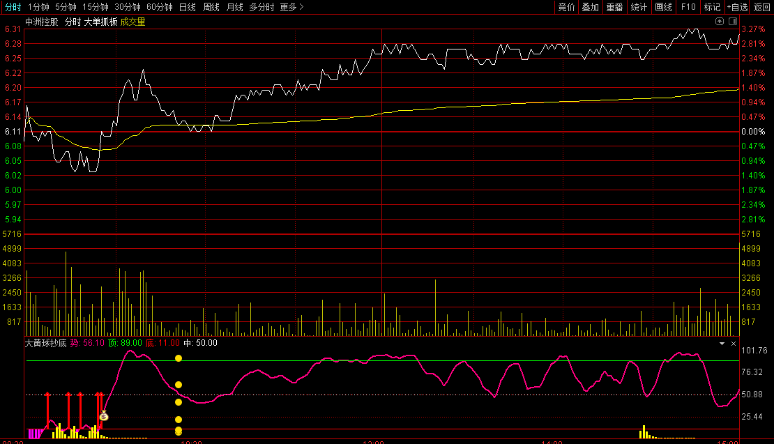 用我的【大黄球抄底】分时副图指标吧!真是居家做T,必备好公式!