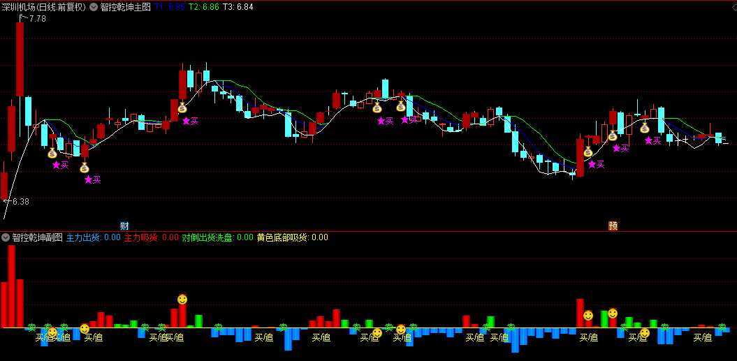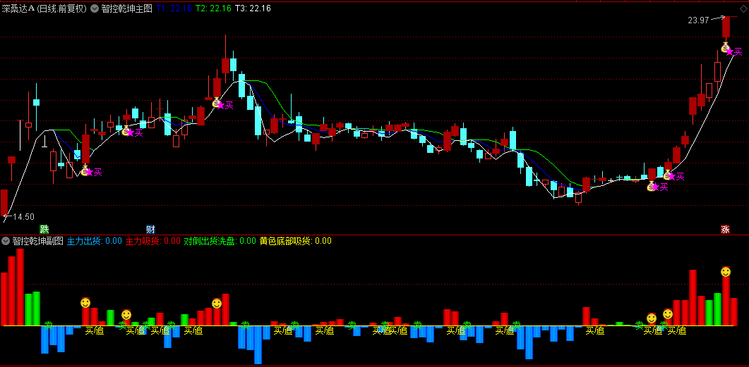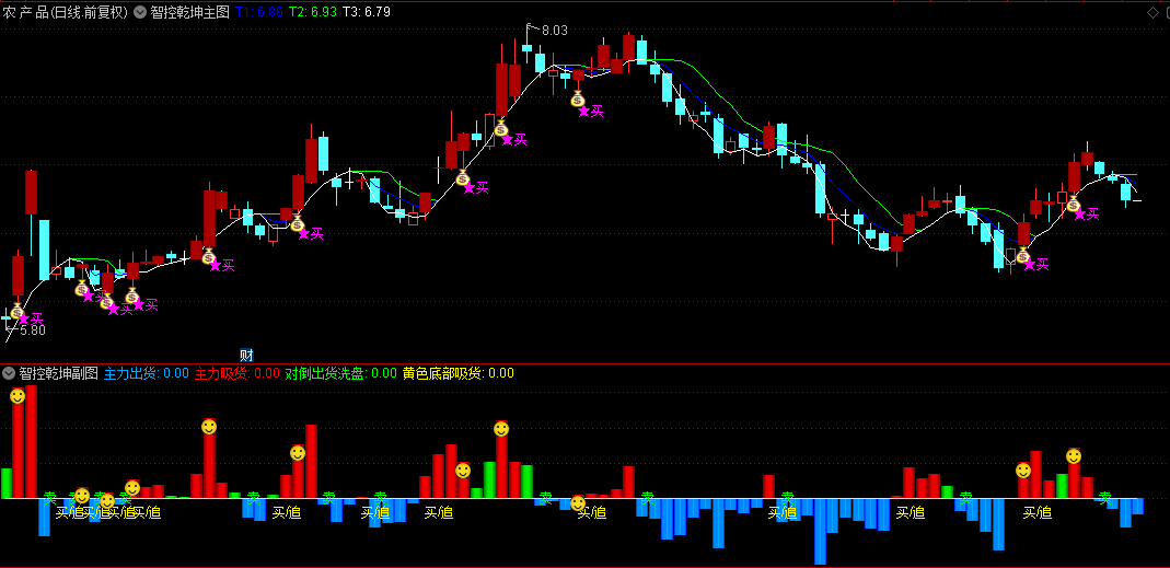 "智控乾坤"系统指标通过量化资金流动本质,将复杂的市场博弈转化为直观的视觉信号体系,是技术分析与行为金融学结合的创新实践。