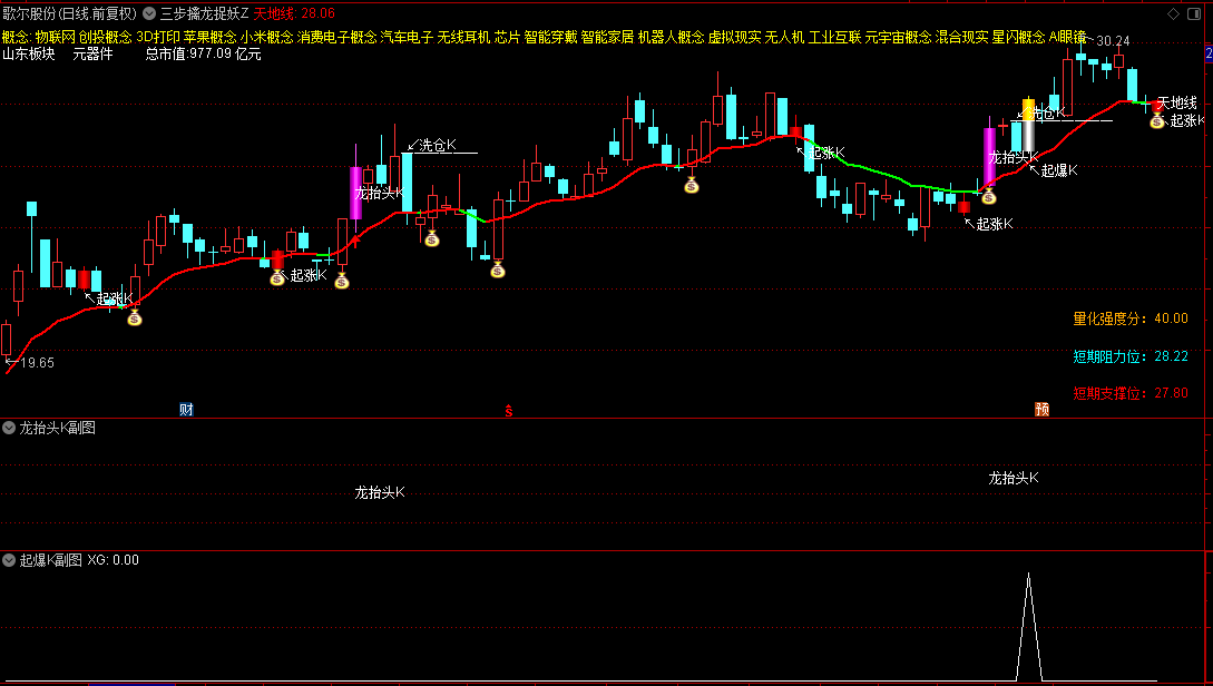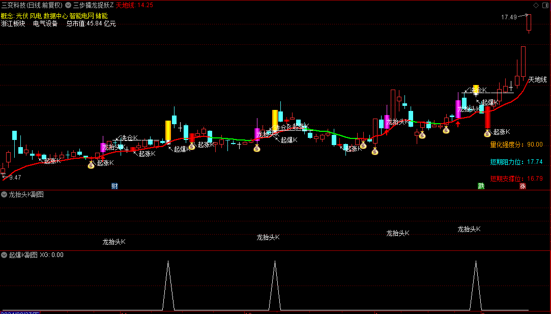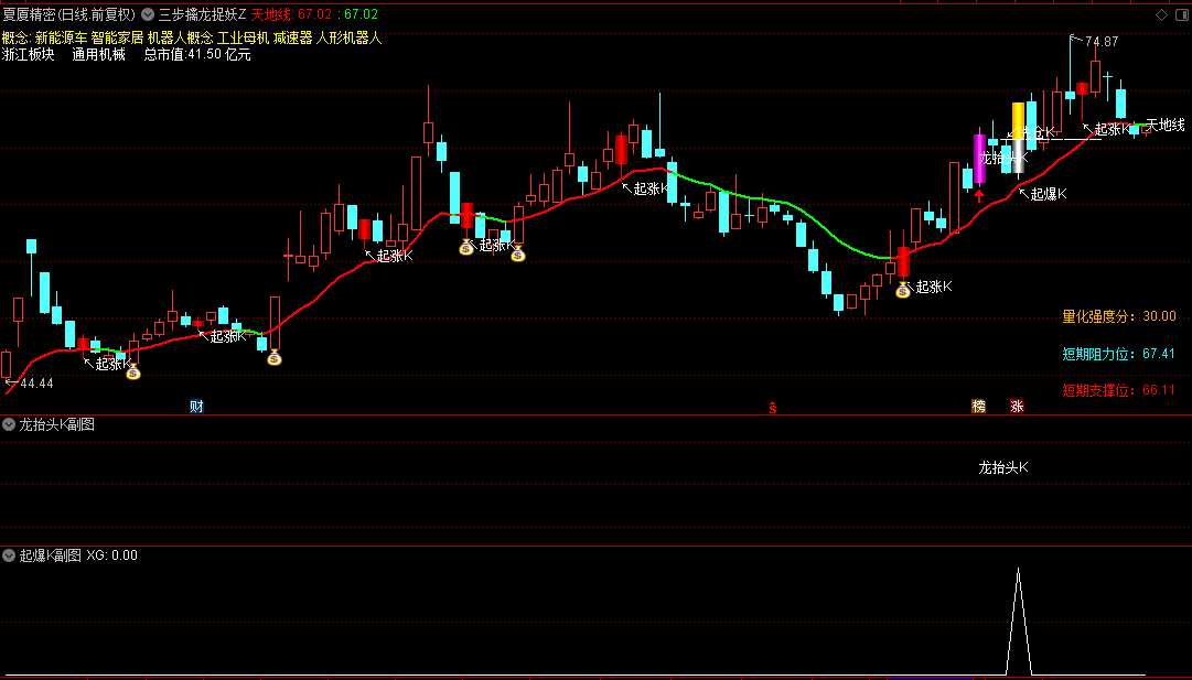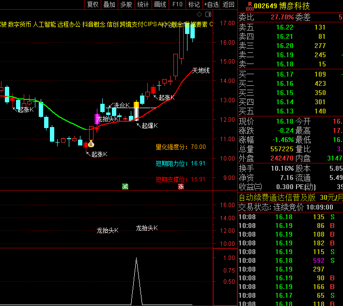 另外还有“量化强度、短期阻力线、短线支撑线”提示参考。
