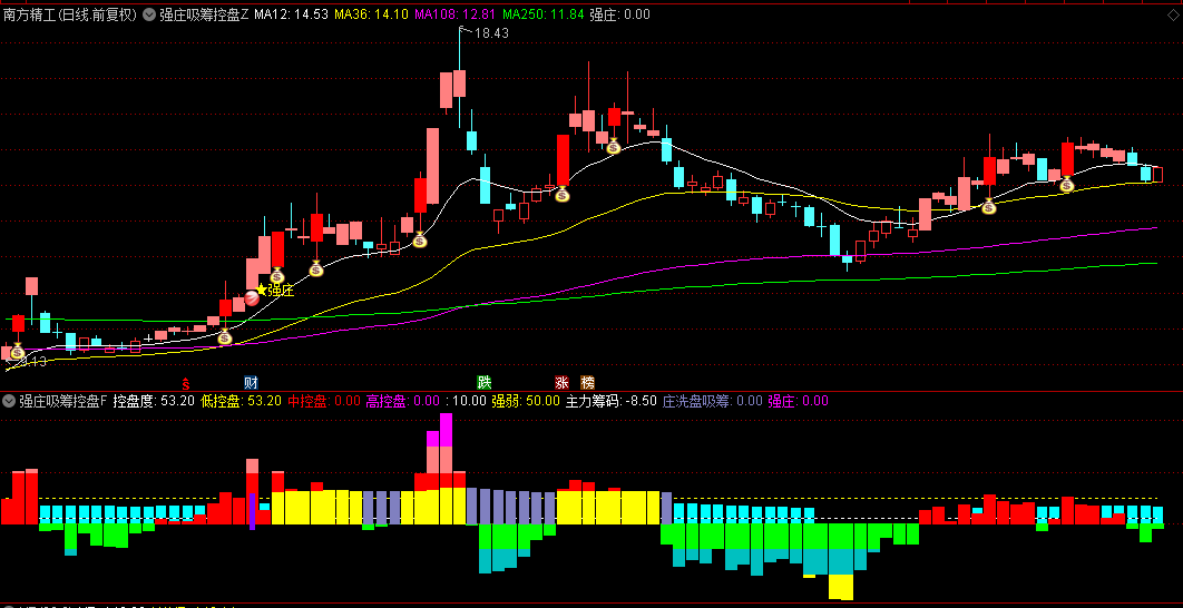 通达信【强庄吸筹控盘】主图+副图+选股指标,多维度结合捕捉庄家控盘动向!