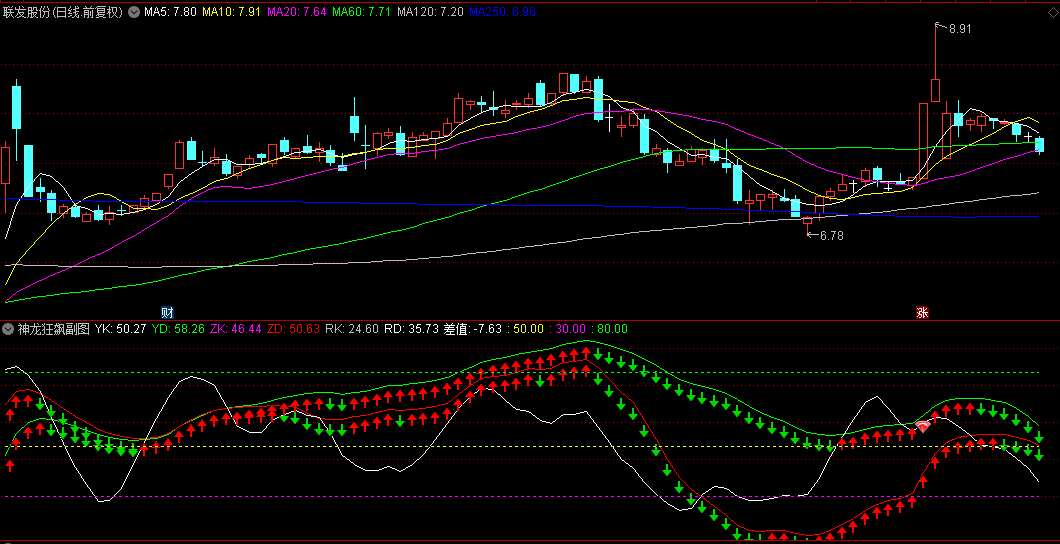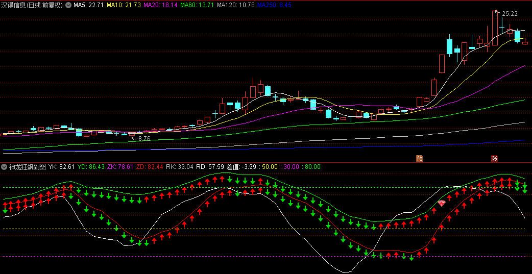 此外,在周线D值或月线D值持续上升或下降的期间,系统会持续显示红色或绿色箭头,以直观反映市场的当前趋势。