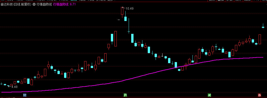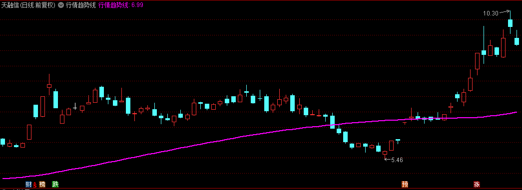 【行情趋势线】以洋红色线条显示,线条粗细为2,在图表中清晰可见。