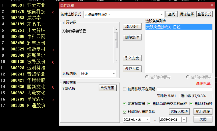 大跌高量抄底选股