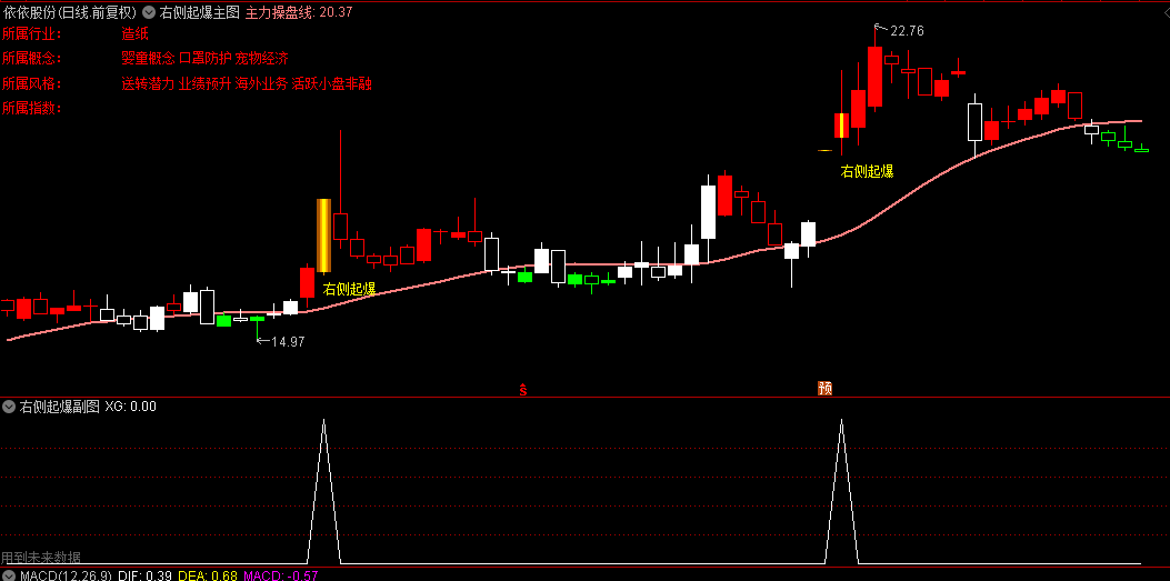 当右侧起爆信号出现时,密切留意,特别是当这一信号在股价长期徘徊于底部区域时首次出现,它往往预示着股价即将步入一段显著的上涨旅程。这一指标作为主图指标的核心。