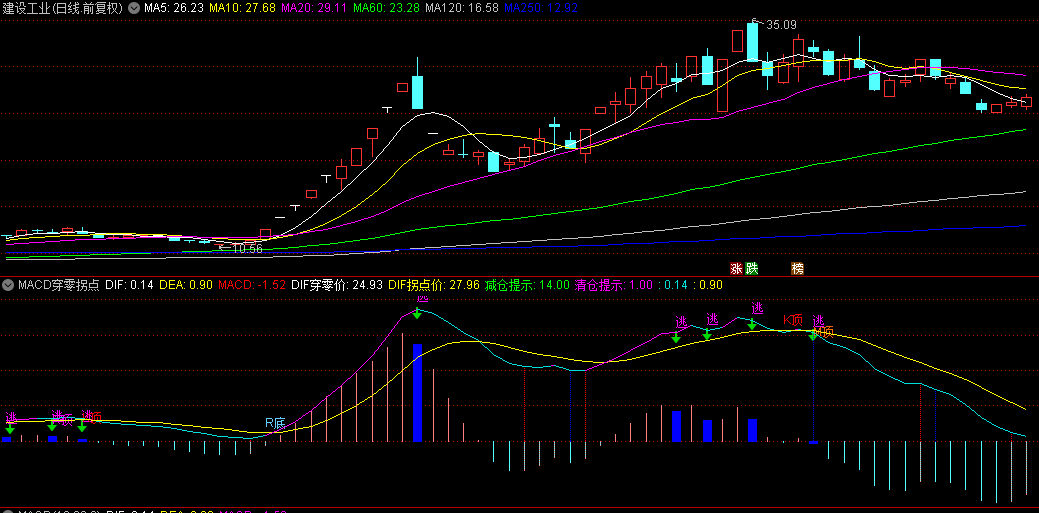 DIF穿零价:当DIF从负值上穿零轴时,计算出对应的价格水平,这通常是市场由空转多的关键点位。