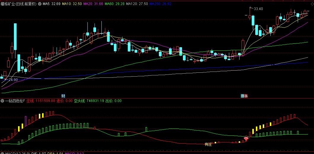 通达信【一钻四色柱】副图/选股指标,精准捕捉庄家筹码情况,不可或缺反转捉妖利器!