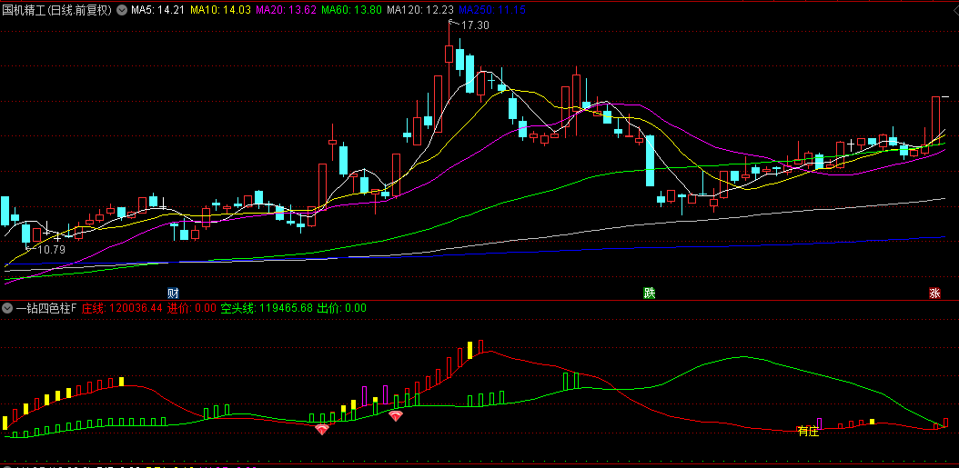 而洋红色空心柱子则代表着洗盘阶段,这是主力资金在拉升前对市场的最后一次清洗。