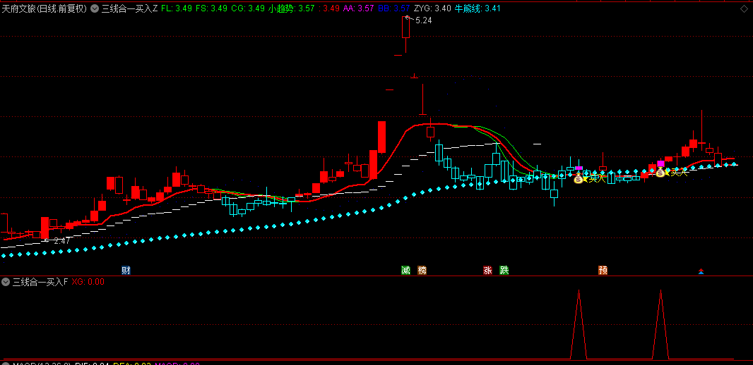 当短期均线(CG线)与中长期均线(半年线)形成金叉,且MACD同步发出买入信号时,市场的上涨概率大幅提升。