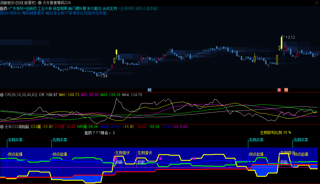 通达信【大牛像素筹码】主图+【大牛高手捉庄】副图+【大牛CCI周期】副图指标,趋势寻牛股,周期滚动做波段!
