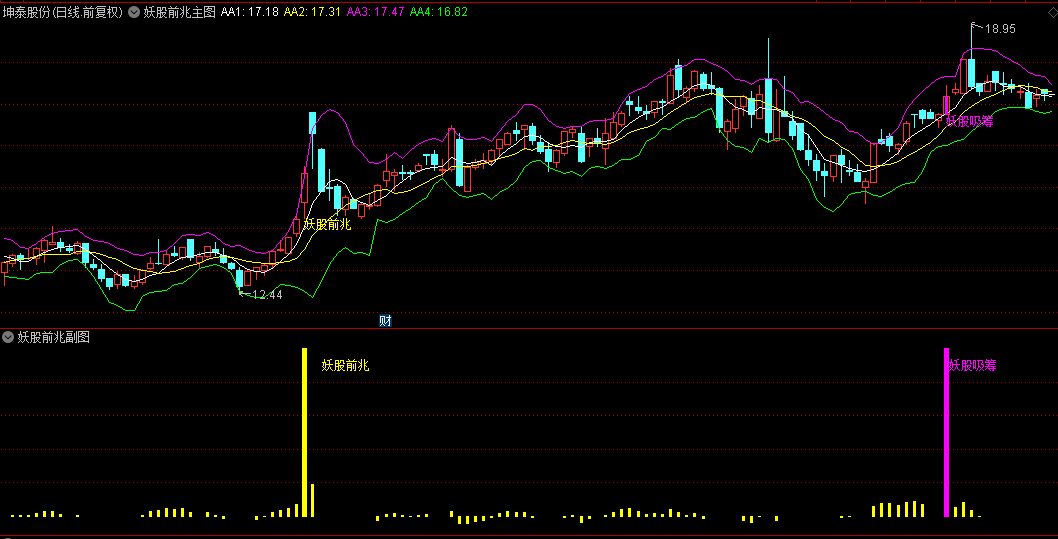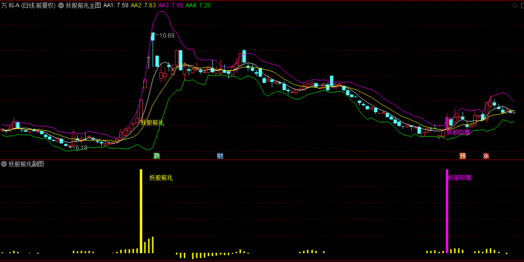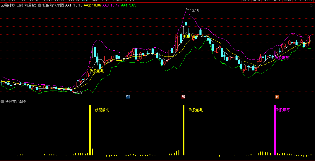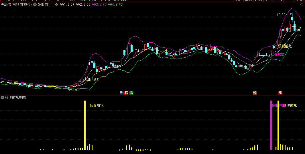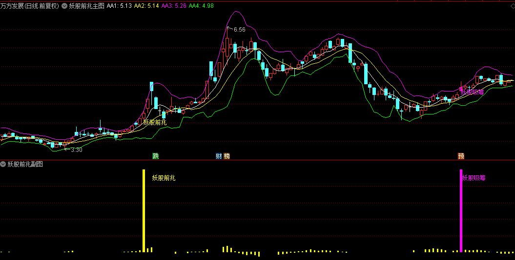 主图和副图出现妖股前兆共振信号则为妖股启动的信号,打板买入确定性最大。