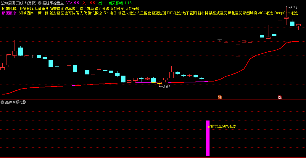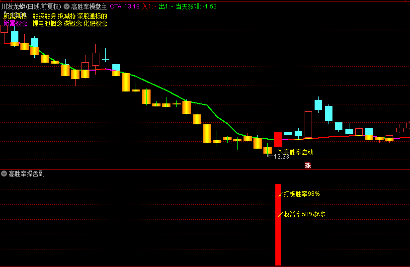 高胜率启动信号:当价格突破CTA线且当日涨幅超过5%时,系统会发出“高胜率启动”信号,提示投资者此时是介入的良机。